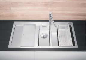Мойки Blanco Claron для монтажа сверху или в один уровень со столешницей с площадкой в стали Durinox
